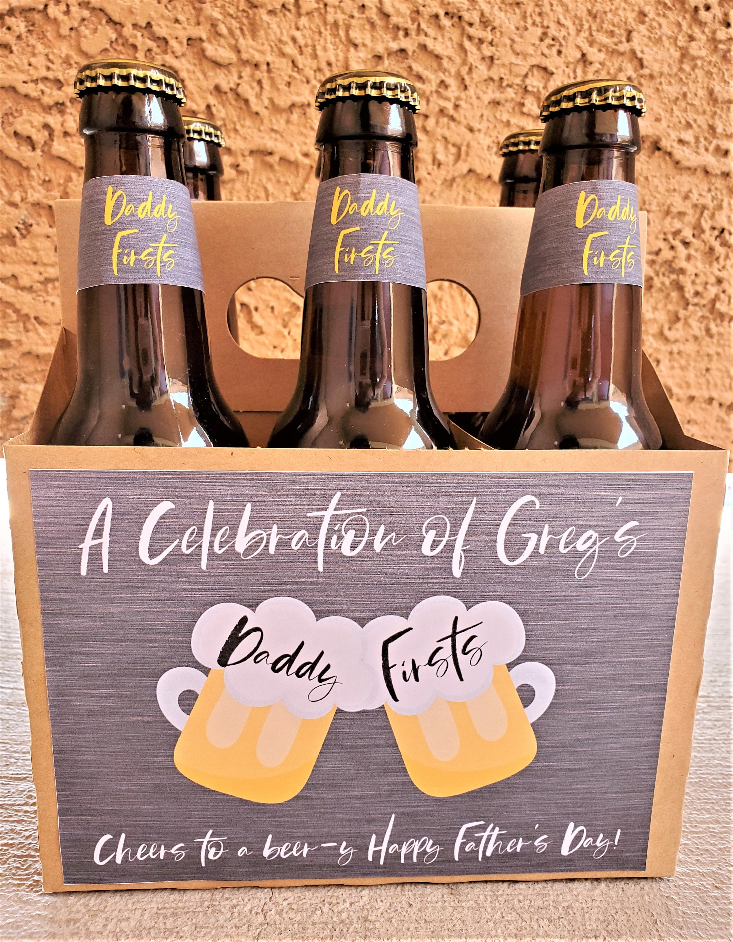 GiftsForYouNow New Dad Survival Kit Personalized Beer Labels and ... Daddy Milestone Beer Bottle Labels - 6 Dad Milestones 6 Pack Beer Stickers for First Time Dad To Be | Daddy To Be Father Appreciation | Diaper Party Present Baby Shower For Him | Made in USA 84 1 offer from $14.95 Big Dot of Happiness Daddy's First Milestones - Decorations for Men - 6 Beer Bottle Label Stickers and 1 Carrier 164 2 offers from $9.99